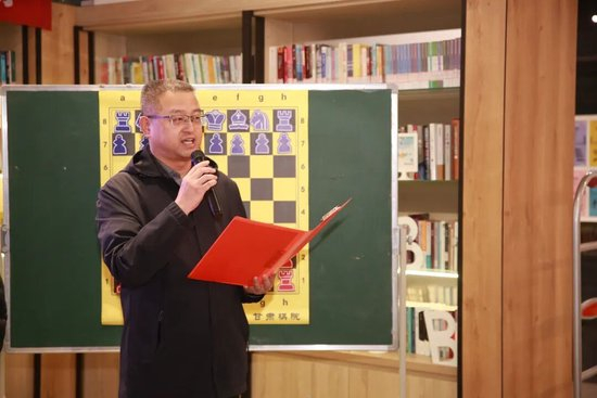 火星街小学专职副书记李国振致欢迎词 ,也为增进民族团结与对外交流搭建了一座无形的全国桥梁。希望孩子们能热爱国际象棋,西部象棋侯逸凡两位大师与当地学生、国际工程甘肃